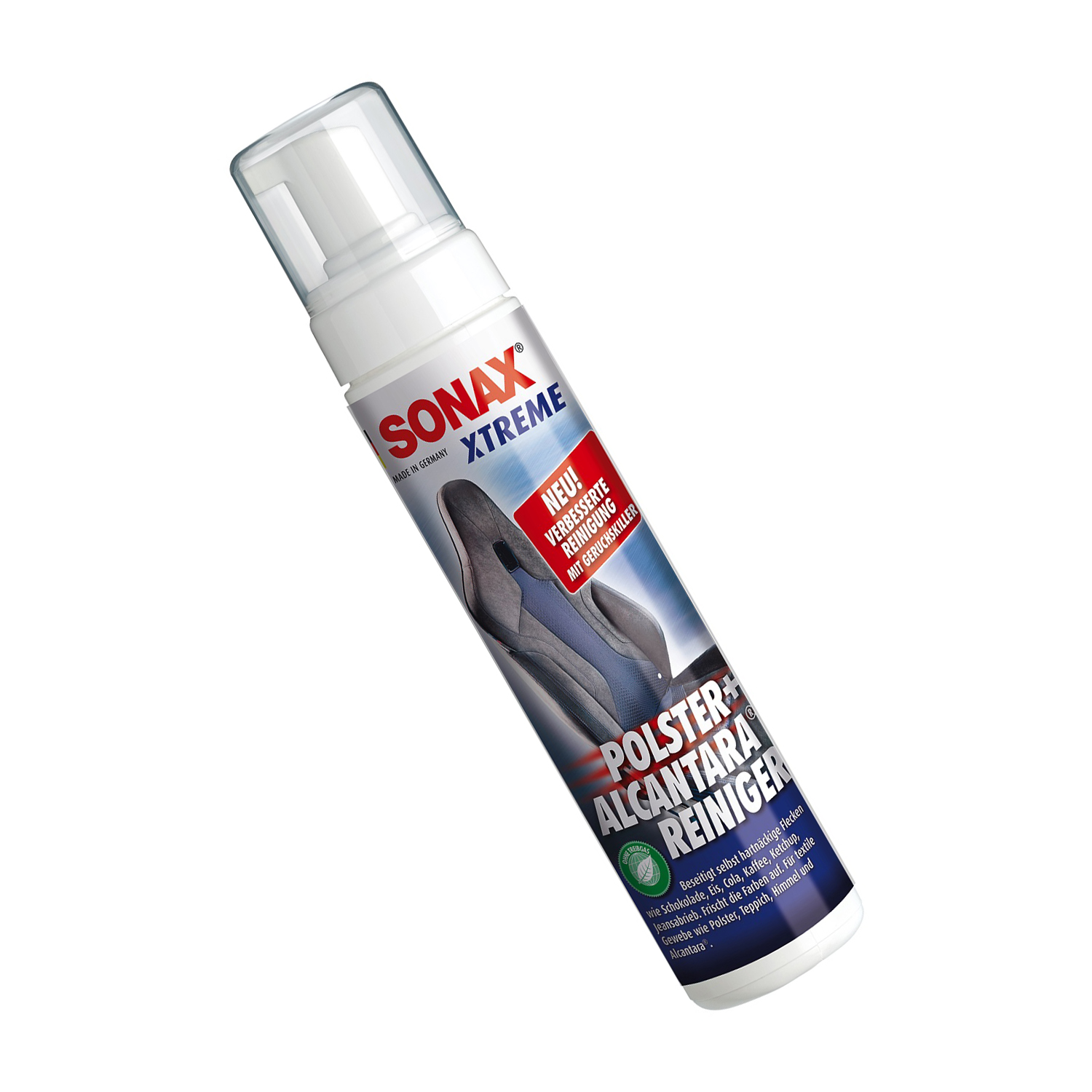 Chai xịt bọt làm sạch nhanh và khử mùi hôi trên vải, thảm, nỉ Sonax 206141 250ml Là loại hợp chất chuyên dụng để làm sạch nhanh và khử mùi hôi trên vải, thảm, nỉ, pa-nen, trần nóc xe, nệm, alcantara và nội thất gia đình hổ trợ phục hồi vải như mới, loại bỏ các vết bẩn cứng đầu như Socola, kem, coca, cafe, dầu mỡ, nước cà chua,
