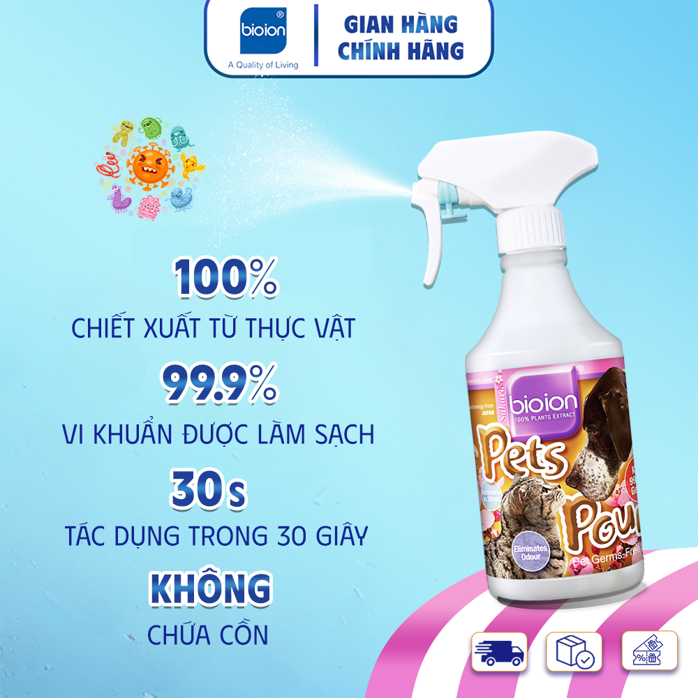 ✨Chai Xịt Khử Mùi Sạch Khuẩn Cho Chó Mèo Bioion Pets Pounce 500ml Hương Sakura
