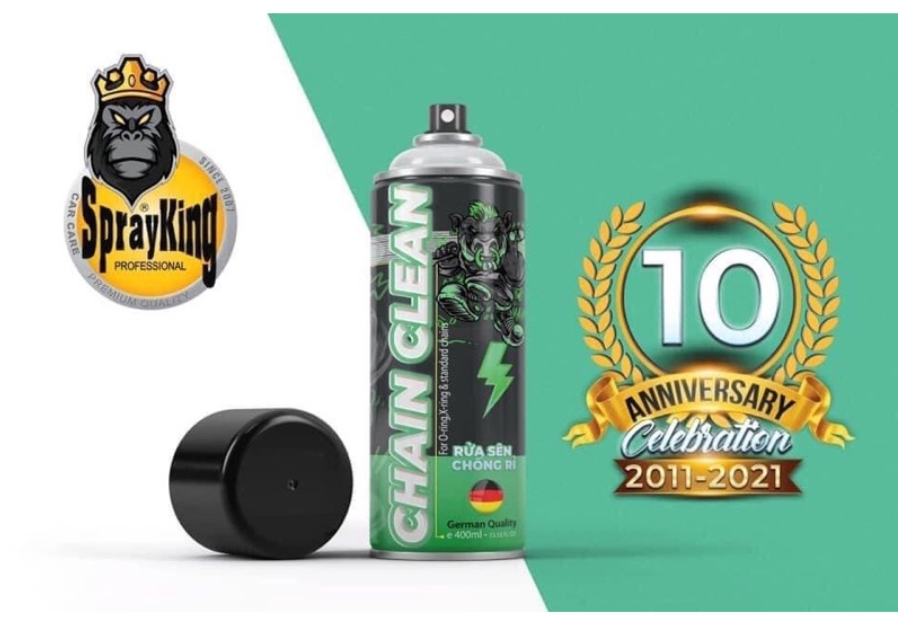 Rửa sên Sprayking 400ml -Nhanh chóng làm sạch và giúp xích/sên không dính dầu mỡ và bụi bẩn -Giúp việc vệ sinh sên nhanh chóng, hiệu quả, an toàn và sạch hơn.