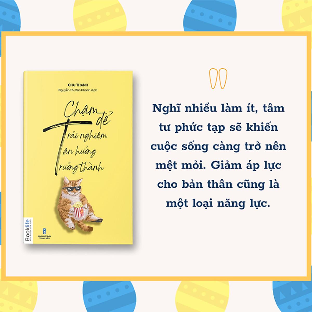 Những lo lắng hay hy vọng về cuộc đời có lẽ ẩn hiện trong những nhân viên công sở tan làm, ngồi ở một con hẻm nhỏ ăn một bát cháo thịt băm; cũng có thể là tấm hình thần tượng được treo trên tường trong những phòng kí túc xá cũ; hay cũng có thể là một ngày lạc trong rừng sâu ngồi trò chuyện với vị hòa thượng già. Cũng giống như khi chơi bàn cát, bạn có đáp án tham khảo, nhưng không có đáp án chính xác. Lựa chọn thế nào sẽ quyết định bạn có những trải nghiệm ra sao. Trên thực tế, bạn không cần phải cố chen chân vào những nơi xô bồ, bon chen; càng không cần vội vã làm việc ở những ngành nghề áp lực nhất khi vừa mới tốt nghiệp; cũng không cần vội vàng xem mắt, kết hôn khi mới vừa hai mươi xuân xanh. Chỉ có bạn, người sống giữa cuộc đời và các mối quan hệ xã hội chân thực, mới có thể hiểu được liệu những điều này có đáng hay không, có cần thiết hay không.” Sau tuổi đôi mươi, bạn chính là người trưởng thành của chính mình. Thử nghiệm nhiều, trải nghiệm nhiều, trả giá nhiều mới là chìa khóa duy nhất mở ra ‘thời kỳ trưởng thành’ của bạn. Cho dù chặng đường độc hành gian khổ, bạn cảm thấy tủi thân những lúc đau ốm không có người ở bên, cảm thấy thật đen đủi khi gặp phải những kẻ chẳng ra gì, thì dù sao đó cũng là những trải nghiệm có một trong hai trong đời. Không chỉ đơn thuần là một cuốn sách truyền cảm hứng, “Chậm” để trải nghiệm, “chậm” để tận hưởng, “chậm” để trưởng thành còn mở ra trước mắt người trẻ một lối sống khác hoàn toàn với xã hội hỗn loạn và xô bồ hiện tại: Sống chậm lại, nghĩ khác đi và học cách quan tâm tới chính bản thân mình nhiều hơn. Nỗ lực sống là chính mình, sống vì bản thân mới thực sự là trưởng thành. Một vài trích dẫn hay: “Nghĩ nhiều làm ít, tâm tư phức tạp sẽ khiến cuộc sống càng trở nên mệt mỏi. Giảm áp lực cho bản thân cũng là một loại năng lực.” “Không có nguyên tắc nào cho cuộc sống, lựa chọn càng không có đúng sai, giá trị của bản thân cũng không ngừng được bồi đắp. Những bước đi trong cuộc đời được quyết định hoàn toàn không chỉ phụ thuộc vào lựa chọn mà còn phụ thuộc vào tâm thế sau sự lựa chọn ấy.” “Bạn không cần phải cố chen chân vào những nơi xô bồ, bon chen; càng không cần vội vã làm việc ở những ngành nghề áp lực nhất khi vừa mới tốt nghiệp; cũng không cần vội vàng xem mắt, kết hôn khi mới vừa hai mươi xuân xanh. Chỉ có bạn, người sống giữa cuộc đời và các mối quan hệ xã hội chân thực, mới có thể hiểu được những điều này có đáng hay không, có cần thiết hay không.” “Khi tài năng của bạn không tương xứng với thu nhập, mong bạn đừng bỏ dở giữa chừng; khi bạn bị ép đến nơi mình không thích, hãy giải quyết vấn đề một cách nhanh chóng, dứt khoát, kịp thời; khi bạn không nhìn rõ con đường mịt mù phía trước, hãy lạc quan, sống cho thực tại.” “Có nhiều người vừa không để ý điều kiện của bản thân, vừa không lựa chọn những con đường để bước tiếp. Họ chỉ dựa vào một niềm tin nồng cháy rằng ‘ngày mai sẽ tốt hơn’ để rồi hoang phí những tháng ngày trước mắt.”