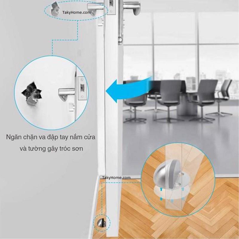 Chặn cửa hình bán nguyệt có nam châm giữ cửa, chặn cửa gắn sàn giúp hạn chế va đập cánh cửa, an toàn