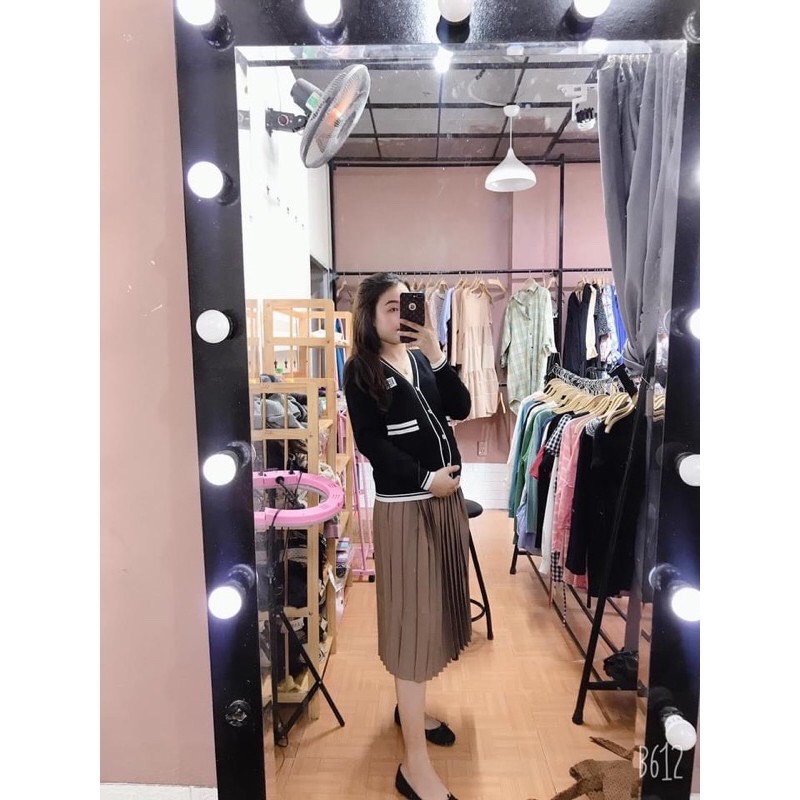 Bí quyết để phụ nữ mang thai vẫn có thể mặc đẹp không chỉ nằm ở những bộ mà còn phụ thuộc vào cách lựa chọn trang phục phù hợp với vóc dáng khi mang thai, cách phối phụ kiện đi kèm. Hãy cùng shop thử diện chiếc chân váy bầu xếp ly này cùng 1 phụ kiện áo len, áo phông, sơ mi bầ xem có vừa ý các chị không nhé