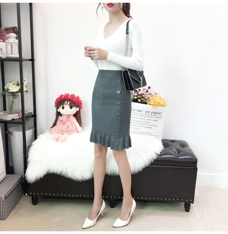✨Chân váy nữ,chân váy len đuôi cá phối cúc mẫu mới Cv10