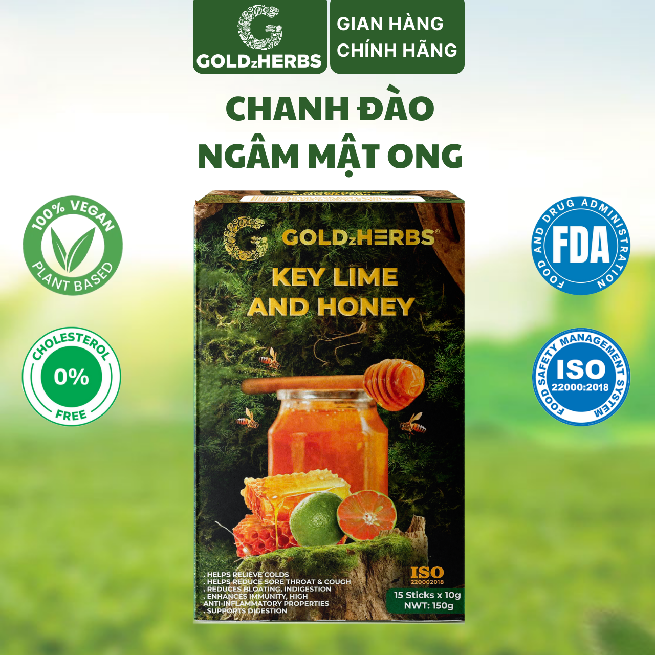 ✨Chanh đào ngâm mật ong goldzherbs, 100% mật ong nguyên chất – Hũ 300g/ Hộp 15 gói