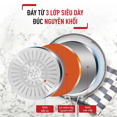 Công năng tuyệt vời giúp việc nấu ăn trở nên đơn giản, nhanh gọn hơn Chất liệu inox 304 cao cấp, tuyệt đối an toàn Chảo xào Trimax sử dụng chất liệu lớp trong