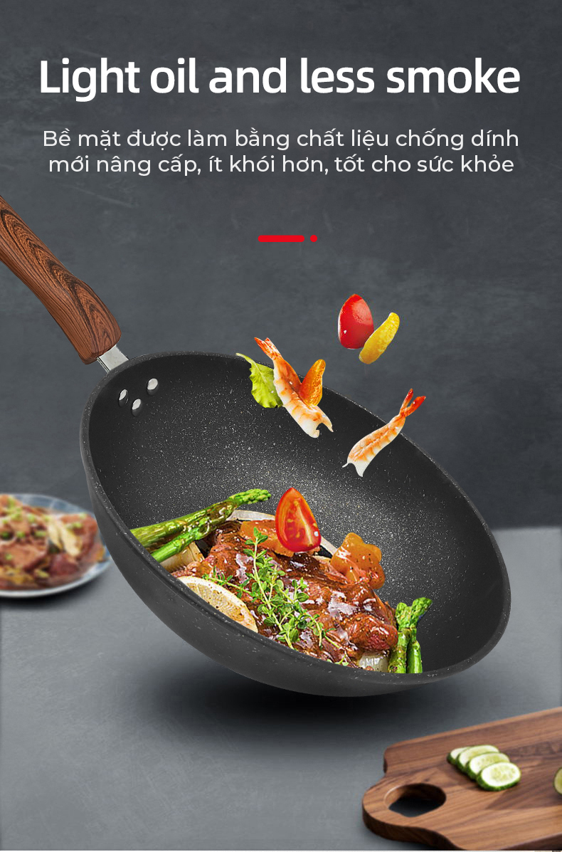 Mua tại TiktokChảo Chống Dính Mẫu Mới Chảo thép phủ vân đá y tế chống dính, chống mài mòn, tay cầm chống cháy cao cấp vân gỗ có thể tháo rời