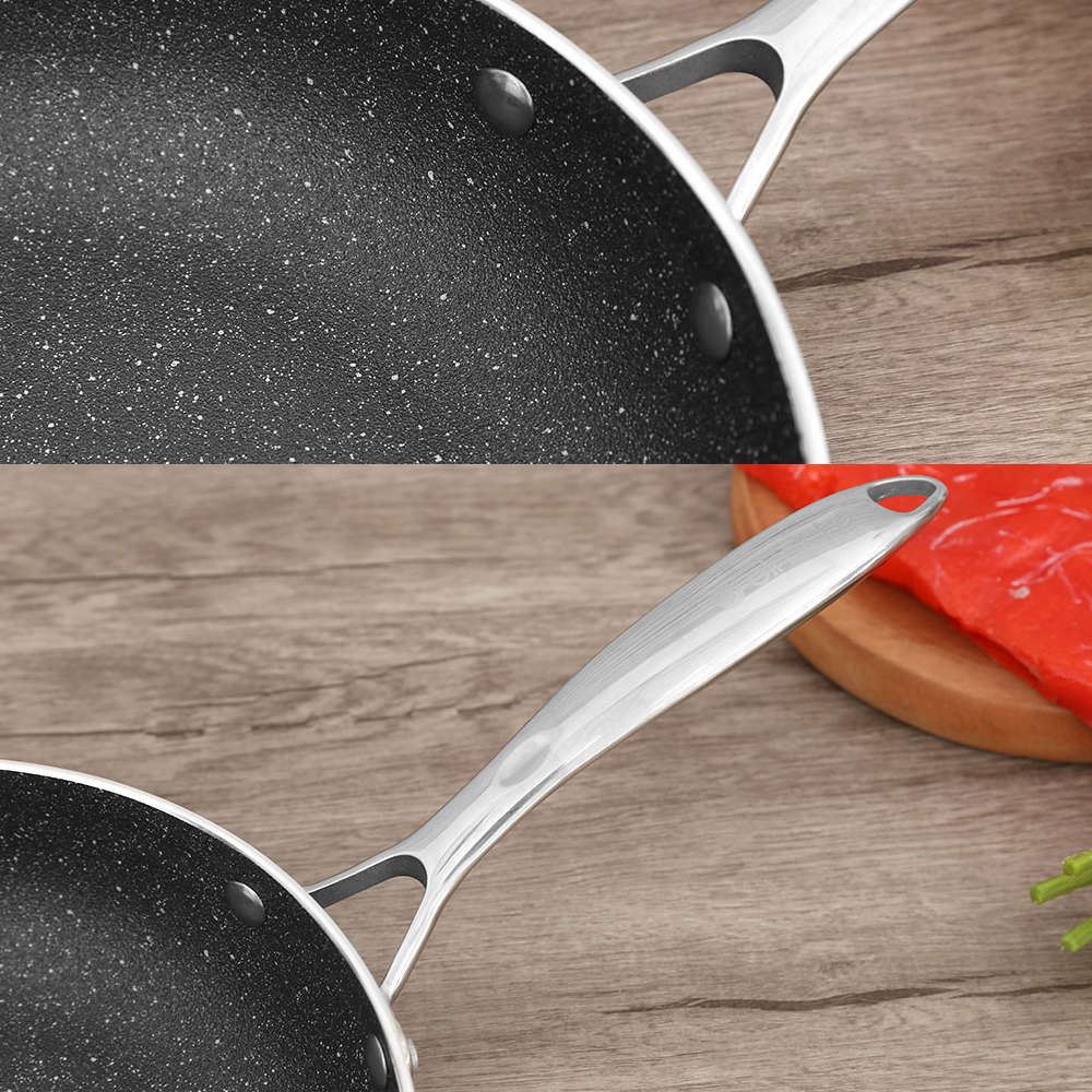 Công năng tuyệt vời giúp việc nấu ăn trở nên đơn giản, nhanh gọn hơn Chất liệu inox 304 cao cấp, tuyệt đối an toàn Chảo xào Trimax sử dụng chất liệu lớp trong