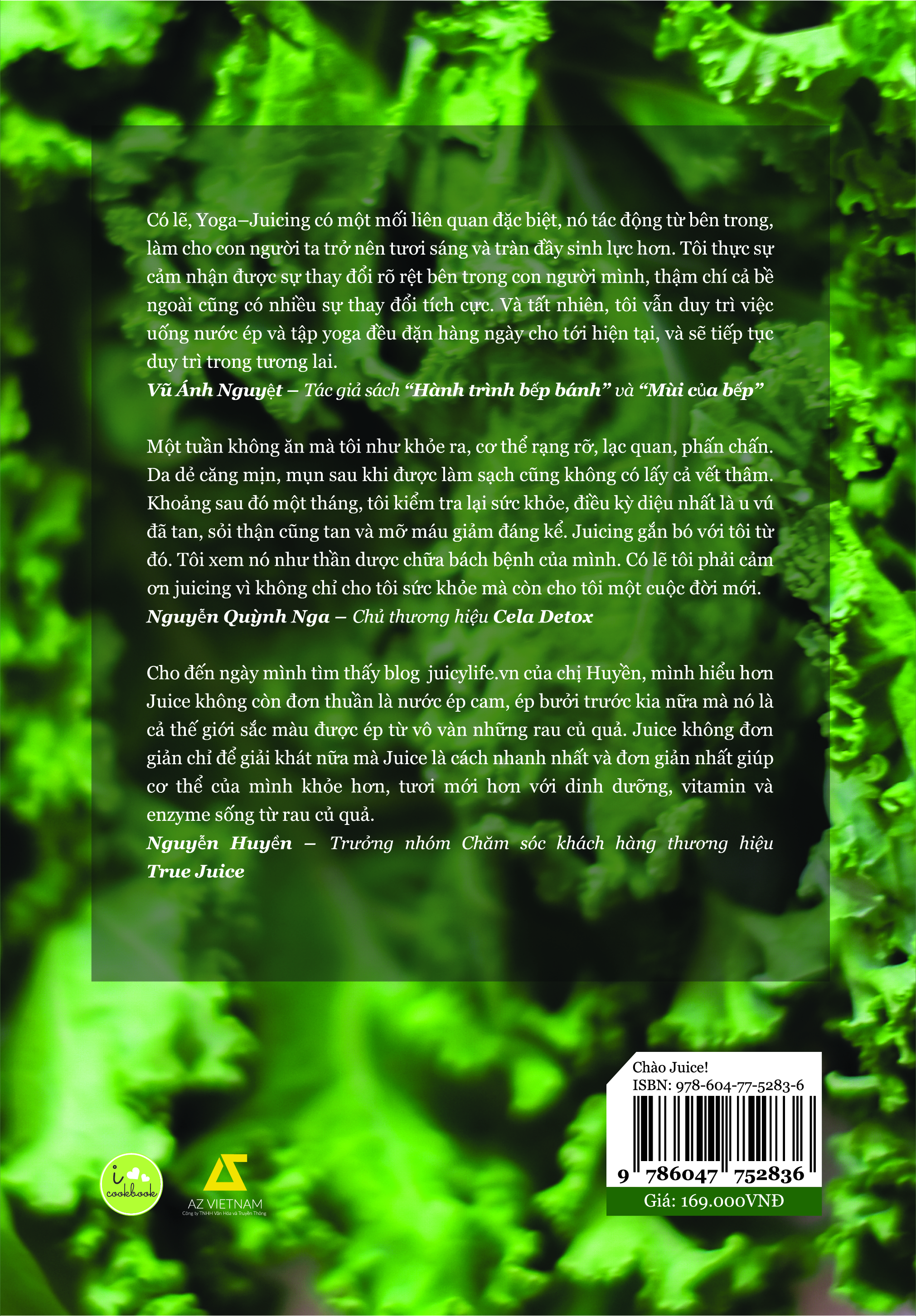 “Chào Juice” là một cuốn sách được tạo nên bởi tình yêu và đam mê với juice của Thanh Huyền- người con gái yêu yoga, nghiện juice, mang trong mình một năng lượng bền bỉ, cùng mong muốn lan tỏa phong cách sống tích cực, lành mạnh tới cộng đồng.