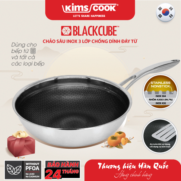 Chảo sâu Blackcube INOX 3 lớp đáy từ chống dính Kims Cook. MÔ TẢ SẢN PHẨM -Chảo inox 304 Blackcube cấu tạo thân đa lớp inox với công nghệ Blackcube mới nhất của Hàn