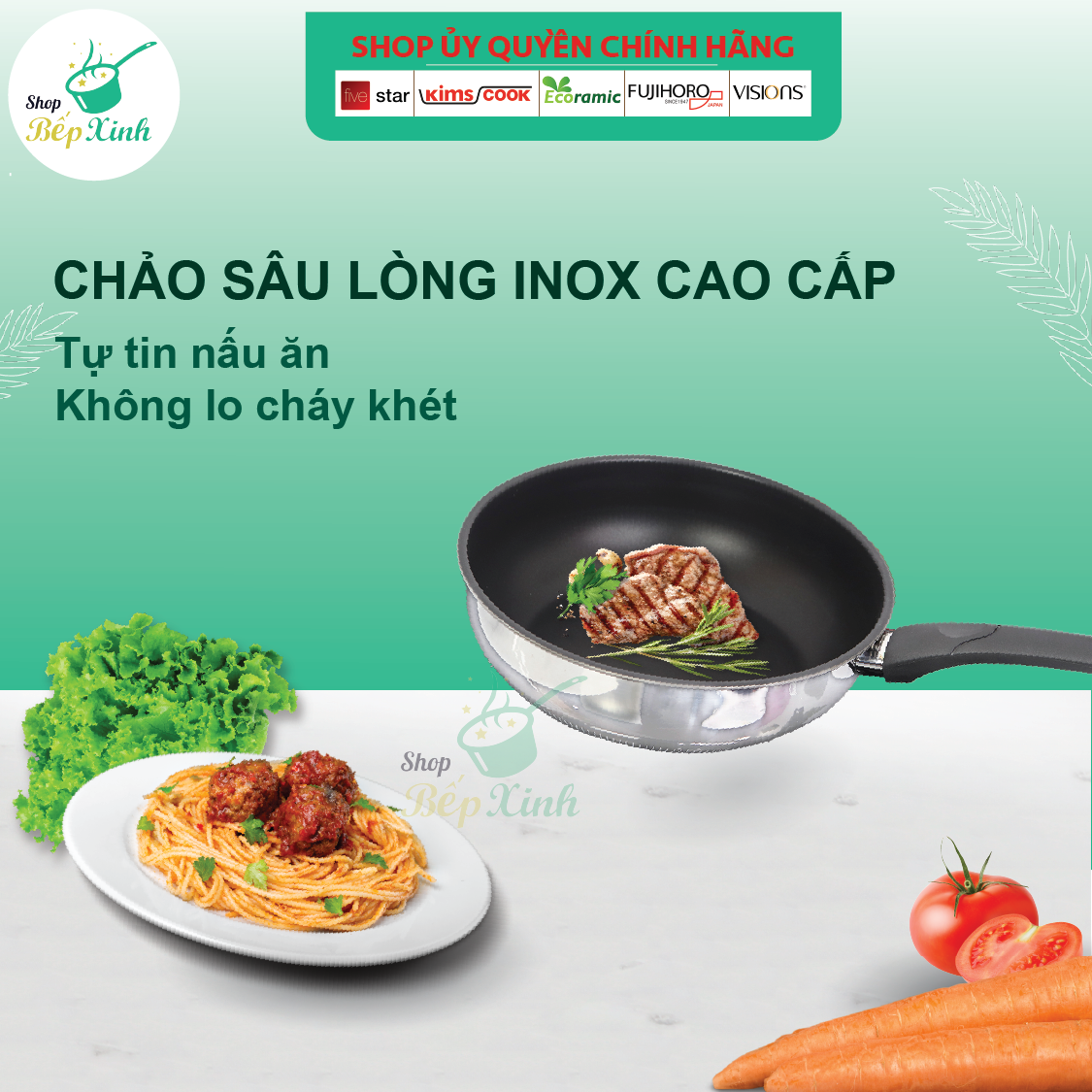Thiết kế sang trọng và đẹp mắt Chất liệu inox 304 cao cấp Vung kính, tay cầm cách nhiệt Thiết kế sâu lòng, xào nấu tiện lợi