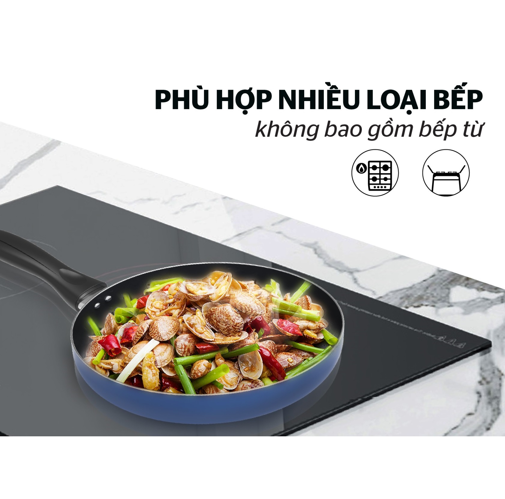 ️ Kích thước chảo: - Chảo 16cm: 16X5cm - Chảo 20cm: 20x5,5cm - Chảo 24cm: 24x6cm - Chảo 26cm: 26x6,5cm - Chảo 28cm: 28x7cm Đặc điểm nổi bật - Công nghệ chống dính Nano Titanium