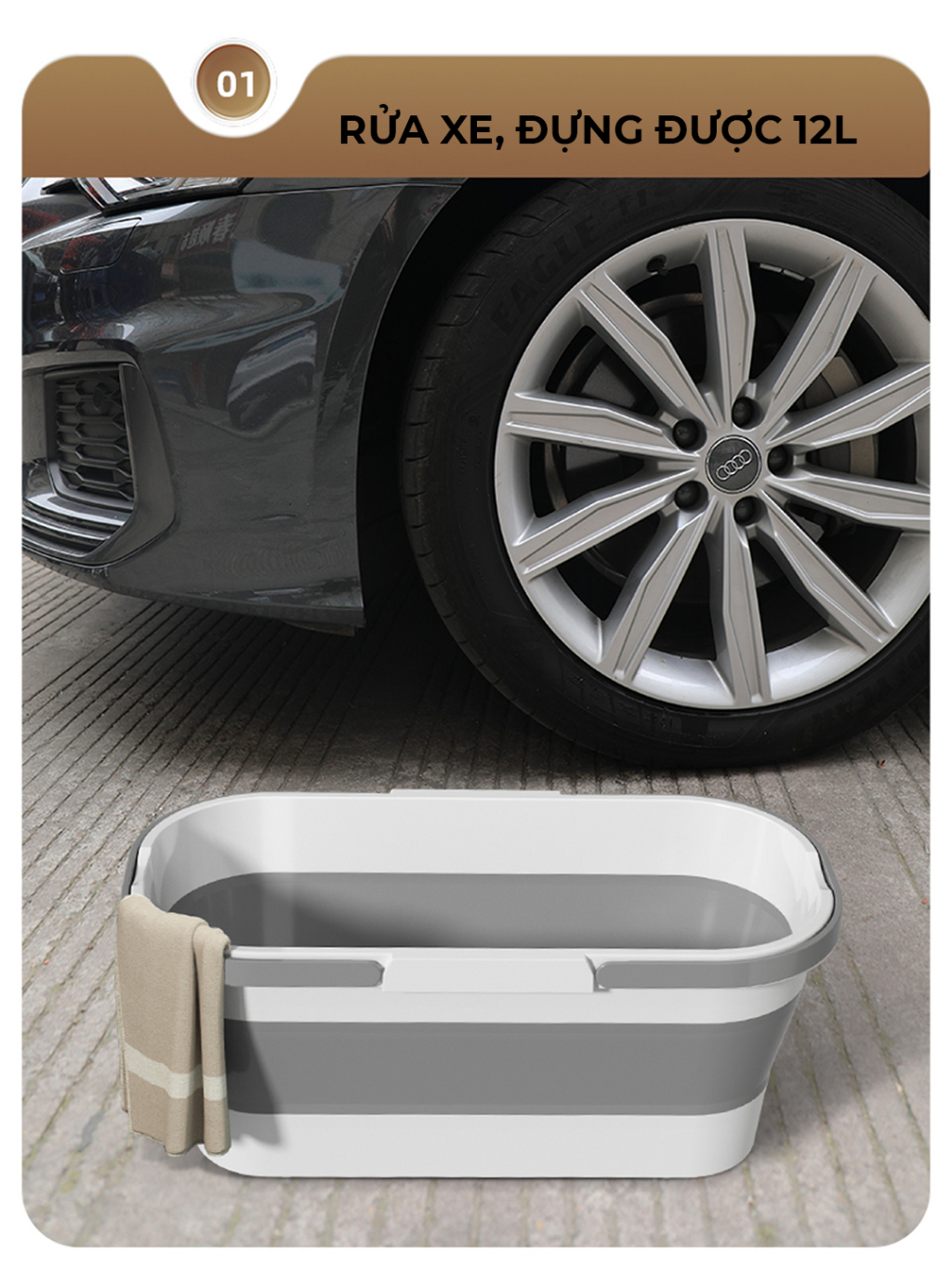 Xô đựng nước gấp gọn đa năng có bánh xe, chậu gấp gọn tiện lợi giặt cây lau nhà chùi kính chứa được 12L nước 1. THÔNG TIN SẢN PHẨM - Chất liệu: Nhựa PP