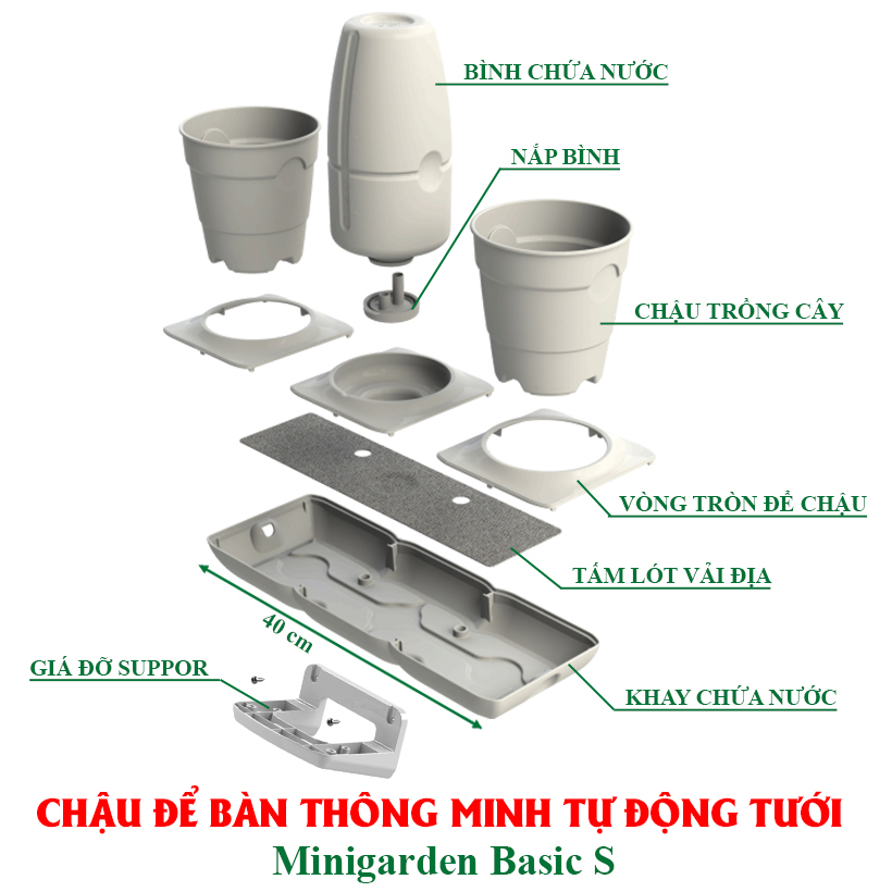 CHẬU ĐỂ BÀN CAO CẤP TỰ ĐỘNG TƯỚI THÔNG MINH NHẬP KHẨU BỒ ĐÀO NHA BASIC S DÀNH CHO NGƯỜI BẬN RỘN Chậu Cây Để Bàn Tự Tưới và Tự bón phân Basic S dùng