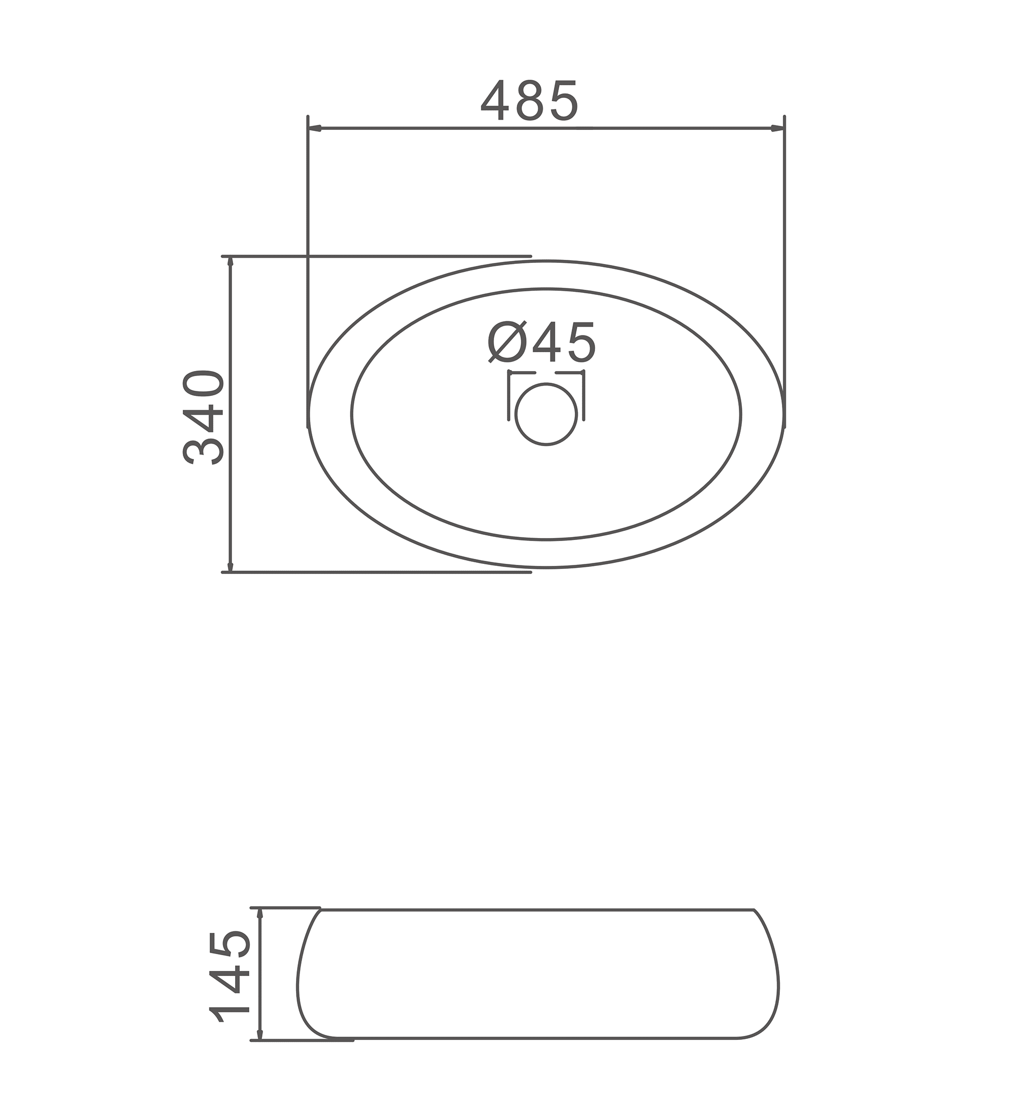 Kích thước: 485x340x145mm (Sản phẩm không bao gồm vòi lavabo, bộ xả….)