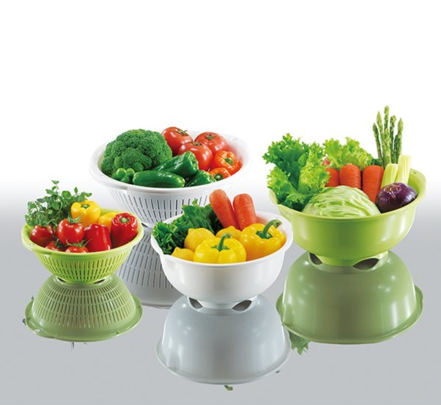 SET 6 MÓN RỔ ráo nước/Rổ Rửa Rau Củ Quả Hai Lớp Ráo Nước Tiện Dụng Cho Nhà Bếp Chất liệu nhựa PP cứng và bền bỉ, an toàn và không độc hại. Thiết kế