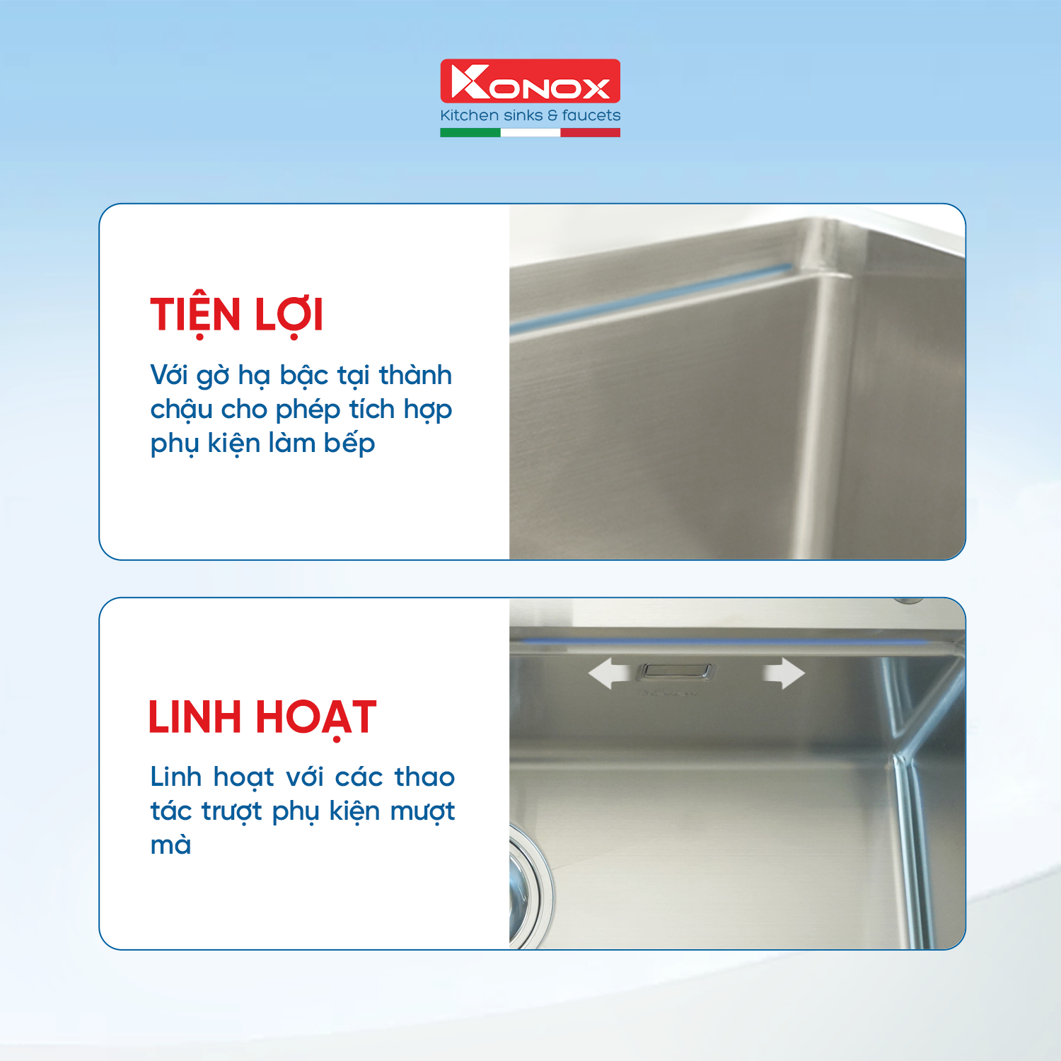 Chậu có thiết kế 2 hố cân Chậu rửa bát với thép cao cấp, siphong nhập tư châu Âu Dung tích chứa lớn với độ sâu bồn tới 190mm Dễ dàng dọn dẹp và lau