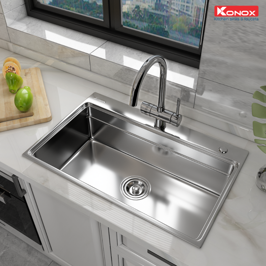 ✨Chậu rửa bát Konox, Overmount Series, Model KN7548SO, Inox 304 cao cấp, 750*480*230mm, Hàng chính hãng