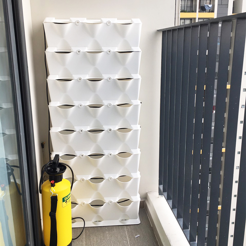 TỰ TRỒNG RAU BAN CÔNG DẠNG ĐỨNG CÓ TƯỚI NHỎ GIỌT BÁN TỪ ĐỘNG VERTICAL (1M2 gồm 8 Module x 2 Tray nước) XẾP NGANG PHÙ HỢP BAN CÔNG NGANG - Hệ Khung Rau Đứng