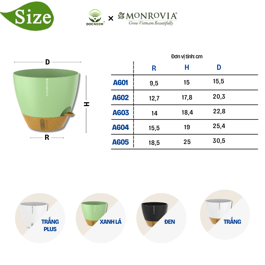 DOCNEEM XIN GIỚI THIỆU ĐẾN BẠN MÃ SẢN PHẨM - CHẬU TRỒNG CÂY TỰ TƯỚI THÔNG MINH MONROVIA A712 _ Chất liệu: PP cao cấp _ Cấu tạo: Chậu bao gồm hai lớp chậu *