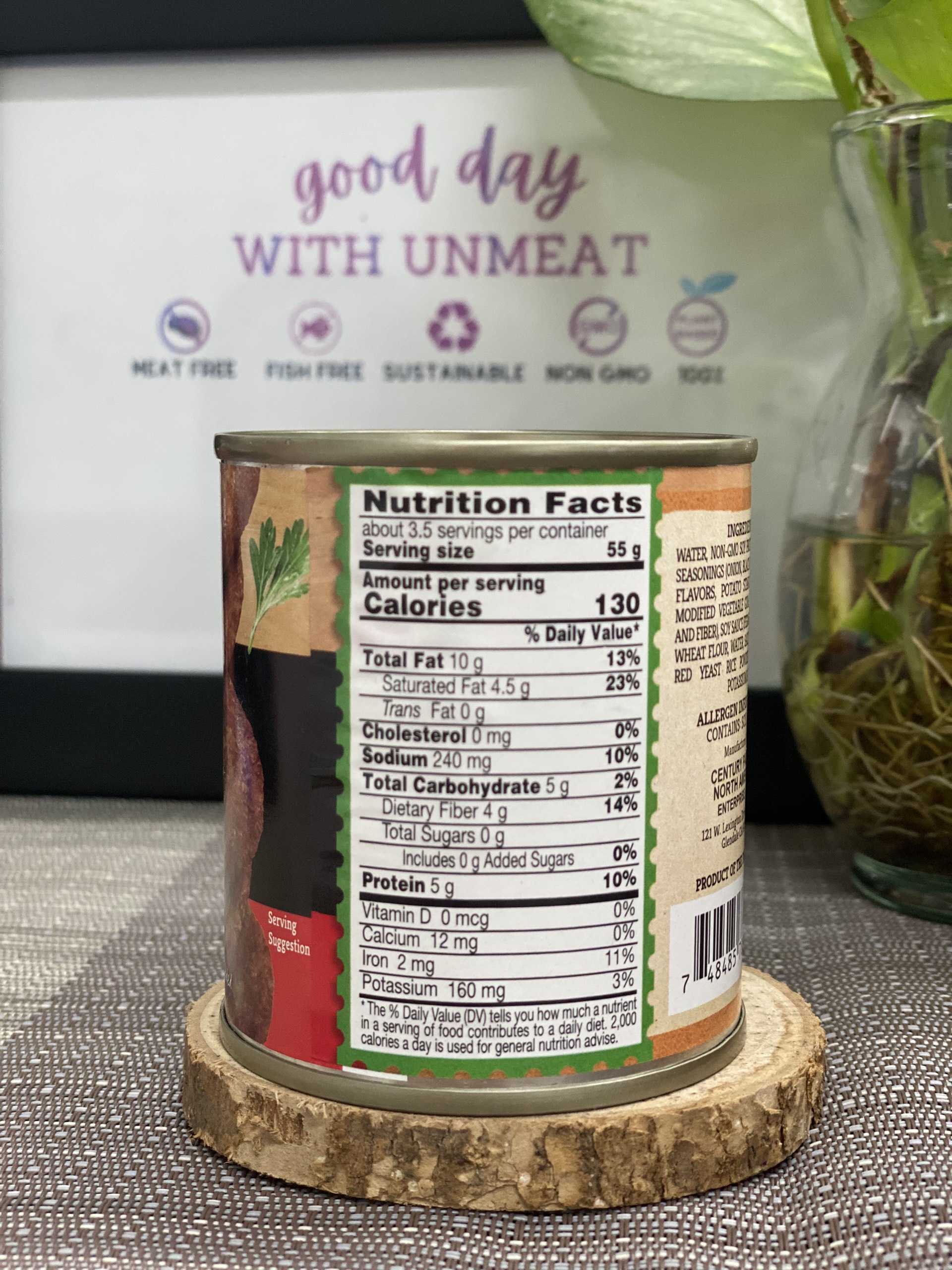 - Cá ngừ chay ngâm dầu Bổ sung ngay vào thực đơn của bạn để chế biến thêm ngàn món ăn ngon đặc sắc với Unmeat nhé! Thành Phần: Nước, protein đậu nành không biến đổi gen, dầu cọ tinh luyện, gia vị (hành, tiêu đen), hương liệu tự nhiên (hương thịt), tinh bột khoai tây (chất làm đặc), gum thực vật biến tính, lúa mì (gluten và chất xơ), nước tương (đậu nành lên men, bột lúa mì, nước, muối), chiết xuất men, bột gạo men đỏ, dấm và muối kali. Khối lượng tịnh: 200 g/ hộp Hướng dẫn sử dụng: Dùng ăn ngay hoặc chế biến. Hướng dẫn bảo quản: Bảo quản nơi khô mát, tránh ánh nắng mặt trời Thông tin cảnh báo: Sản phẩm có chứa lúa mì và đậu nành. Không nên sử dụng khi bao bì rỉ sét hoặc nắp hộp bị phồng. Ngày sản xuất: Xem trên bao bì sản phẩm (Ngày/ tháng/ năm) Thời hạn sử dụng: 36 tháng kể từ ngày sản xuất. Hạn sử dụng: ghi trên bao bì sản phẩm (Ngày/ tháng/ năm). Xuất xứ: Philippines - Nhà sản xuất: General Tuna Corporation