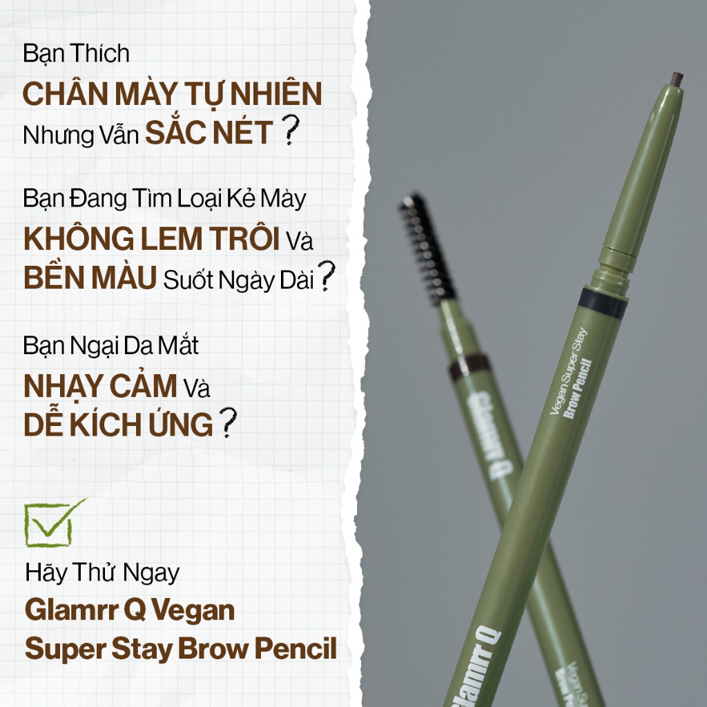 [NEW] Chì Kẻ Mày Glamrr Q Bền Màu Thuần Chay VEGAN SUPER STAY BROW PENCIL (0.08g) Chì kẻ mày với khả năng định hình 24H, nét phẩy sợi tự chân thật, màu sắc tự nhiên, ứng dụng thiết kế đầu chải Smart...