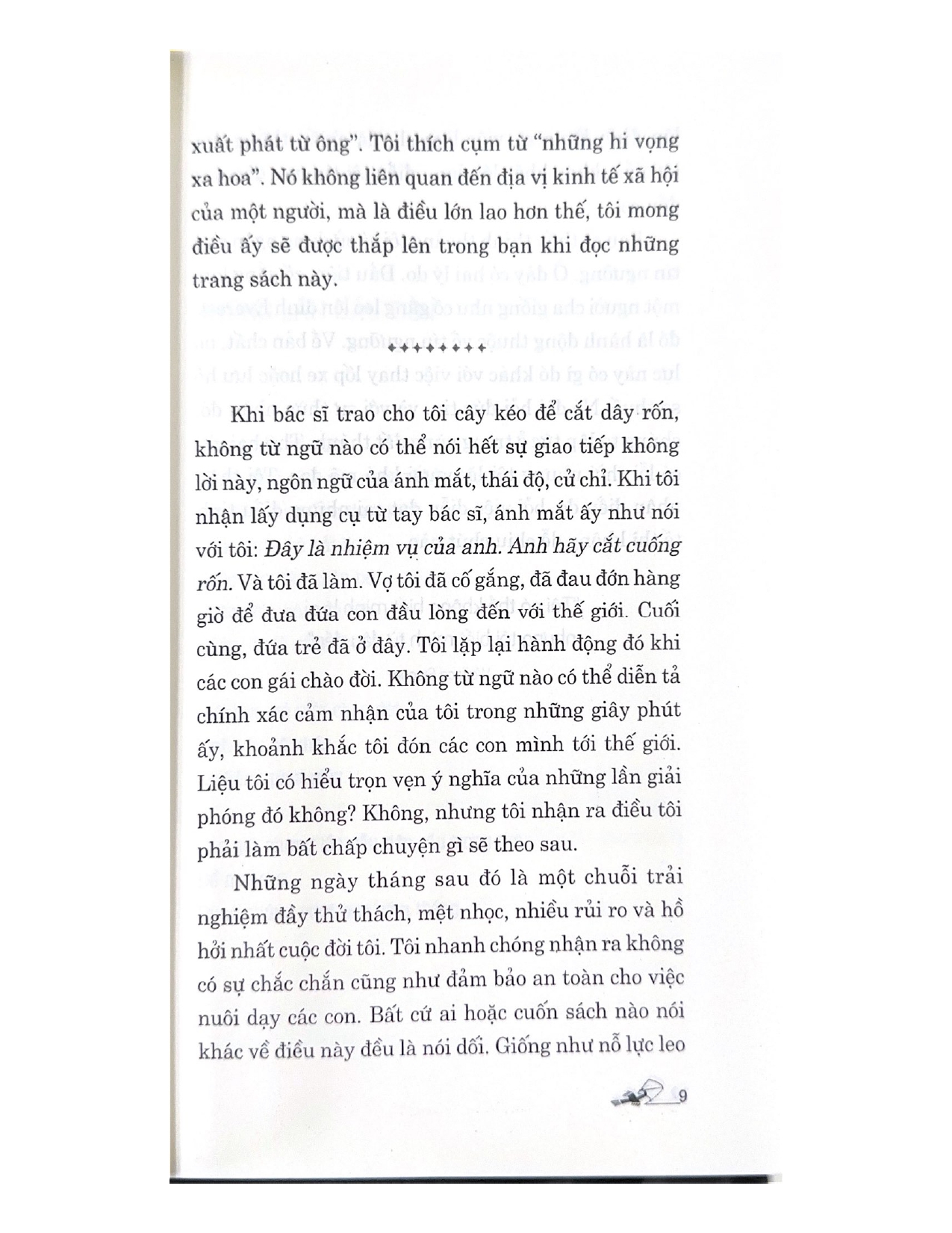 Sách CHIA SẺ KINH NGHIỆM LÀM CHA với ngôn ngữ mộc mạc của một người đang trải qua thử thách lớn nhất của đời người, Blase viết rằng: “Những gì trải qua thuyết phục tôi rằng việc làm cha rất giống hành động mạo hiểm - trách nhiệm làm cha là nhiệm vụ đầy liều lĩnh và rủi ro”.