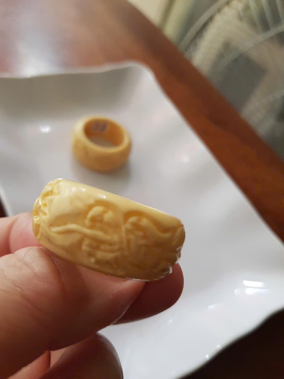 Chiếc Nhẫn Nam Giả Ngà hay Xương Mỹ Nghệ Bản Hẹ Chạm Rồng Ni 22mm Cao 14mm Dầy 5mm màu trắng Dành Cho Các Anh Nam đeo nhẫn ngón tay cái hay bất kỳ ngón tay nào ni lọt vừa tay là 22mm rẻ vẫn đẹp như thường ạ