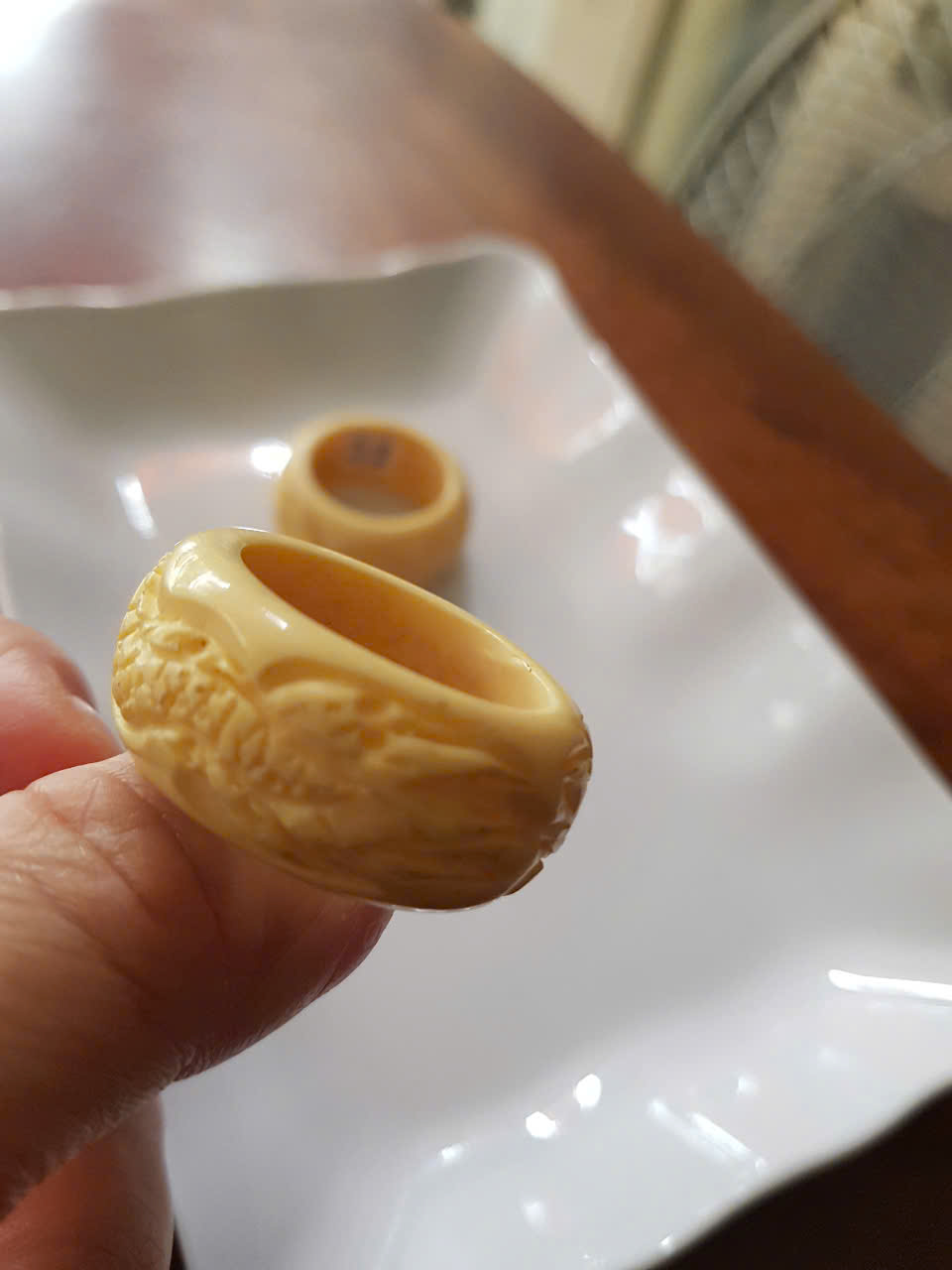 Nhẫn Nam Giả Ngà hay Xương Mỹ Nghệ Chạm Rồng Nổi Lượn Bản tròn Ni 22mm Cao 13mm Dầy5mm Shop Sunny Q8