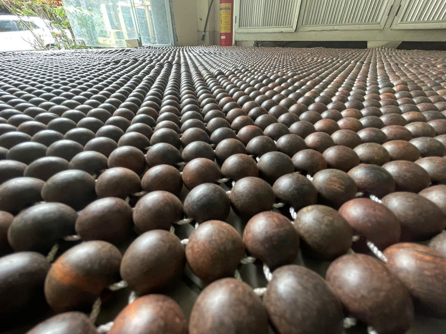 CHIẾU HẠT GỖ HƯƠNG ĐỎ CAO CẤP ( ) : - Chất liệu : 100% gỗ Hương tự nhiên - Kích thước chiếu : 2,2mx2m - Kích thước hạt : 1,2cm ( kích thước hạt