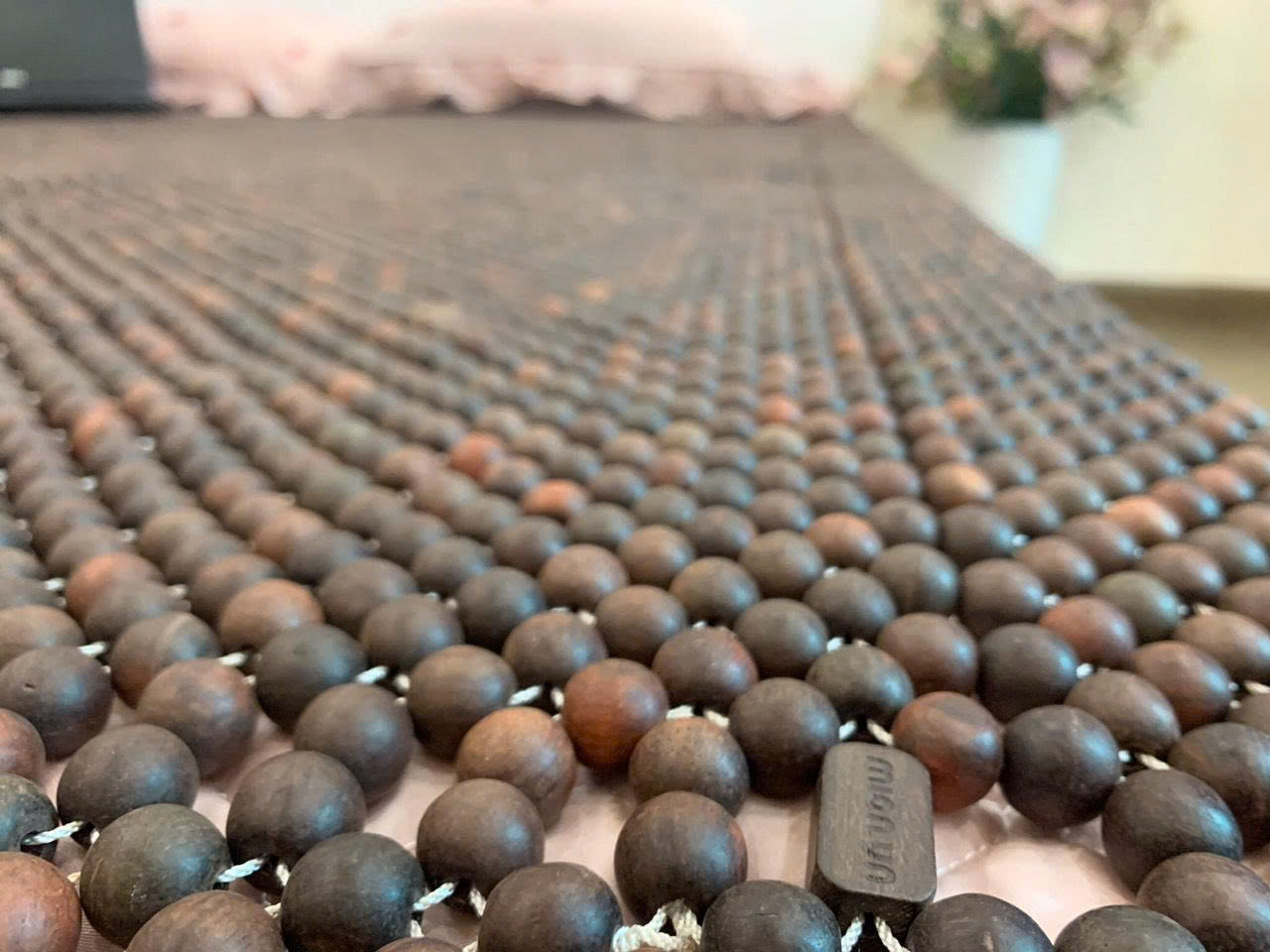CHIẾU HẠT GỖ HƯƠNG ĐỎ CAO CẤP ( ) : - Chất liệu : 100% gỗ Hương tự nhiên - Kích thước chiếu : 1,2mx1,9m - Kích thước hạt : 1,2cm ( kích thước hạt