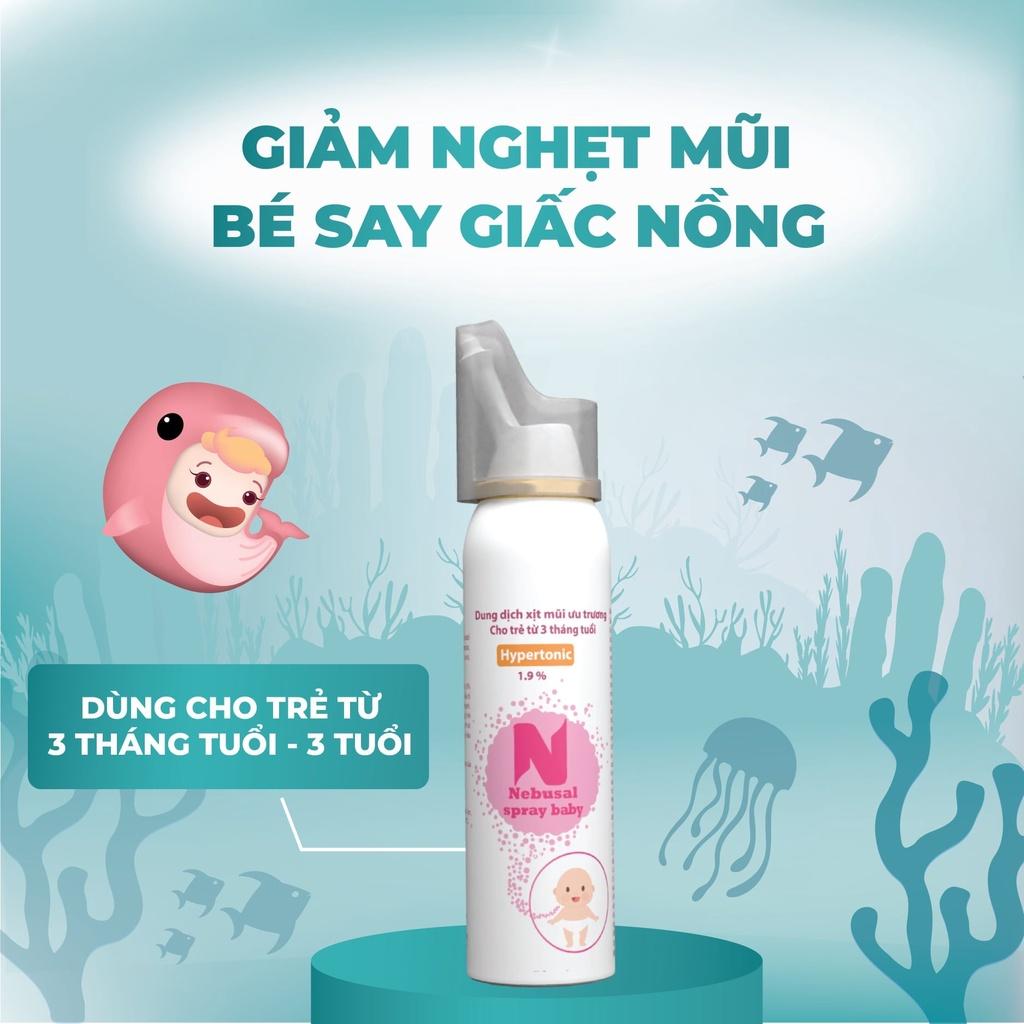 Xịt mũi Nebusal Spray là xịt mũi dung dịch nước muối biển hàng đầu tại Việt Nam, được sản xuất theo dây chuyền đạt chuẩn GMP-WHO, an toàn với trẻ nhỏ và cả người lớn