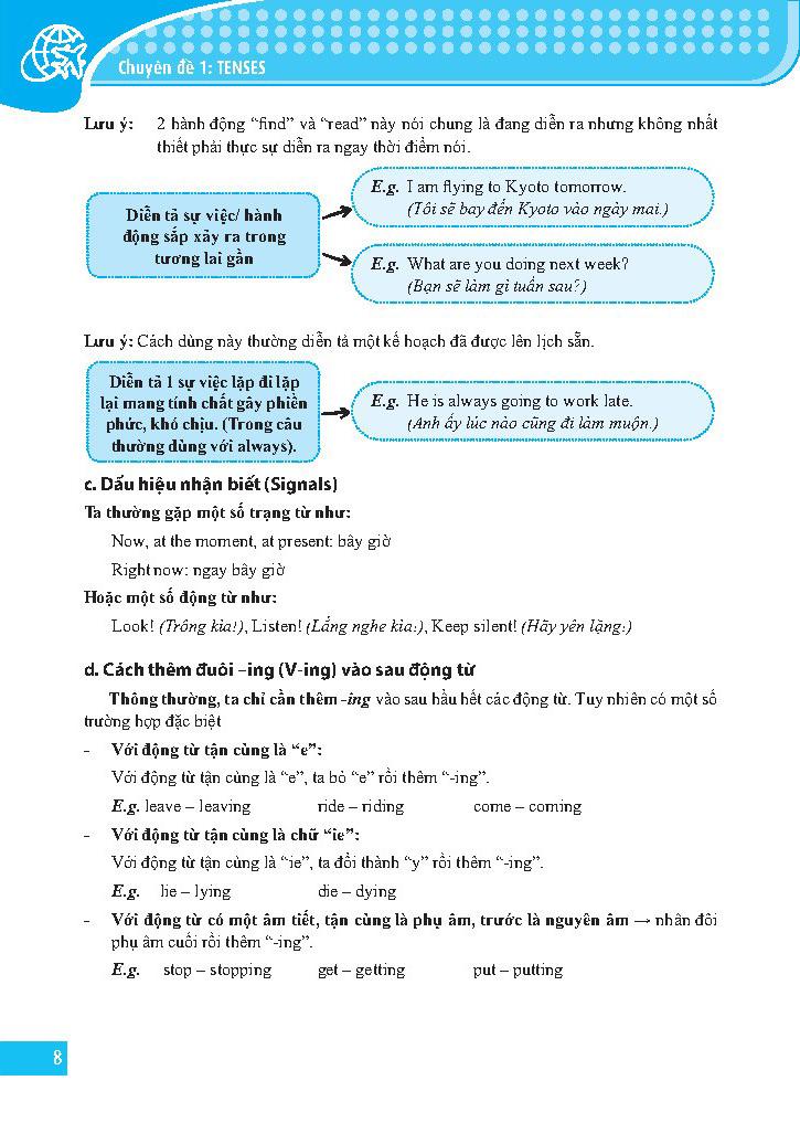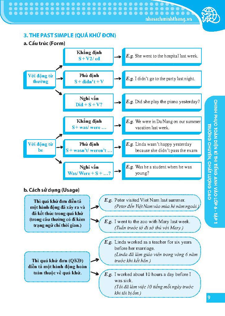 Nội dung cuốn sách được chia thành từng chuyên để để các em tiện tra cứu, học tập. Từ những chuyên đề căn bản đến nâng cao toàn diện như các thì của động từ, sự hòa hợp giữa chủ ngữ và động từ, danh từ số ít – số nhiều, các dạng cấu trúc câu so sánh, các dạng động từ khuyết thiếu, các từ hỏi, liên từ, các loại câu điều kiện, câu bị độ