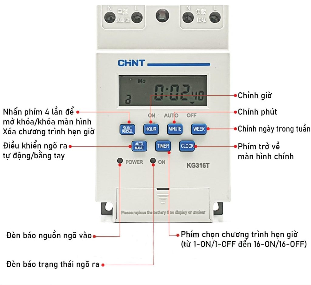 Hướng dẫn cài đặt timer KG316t Chint