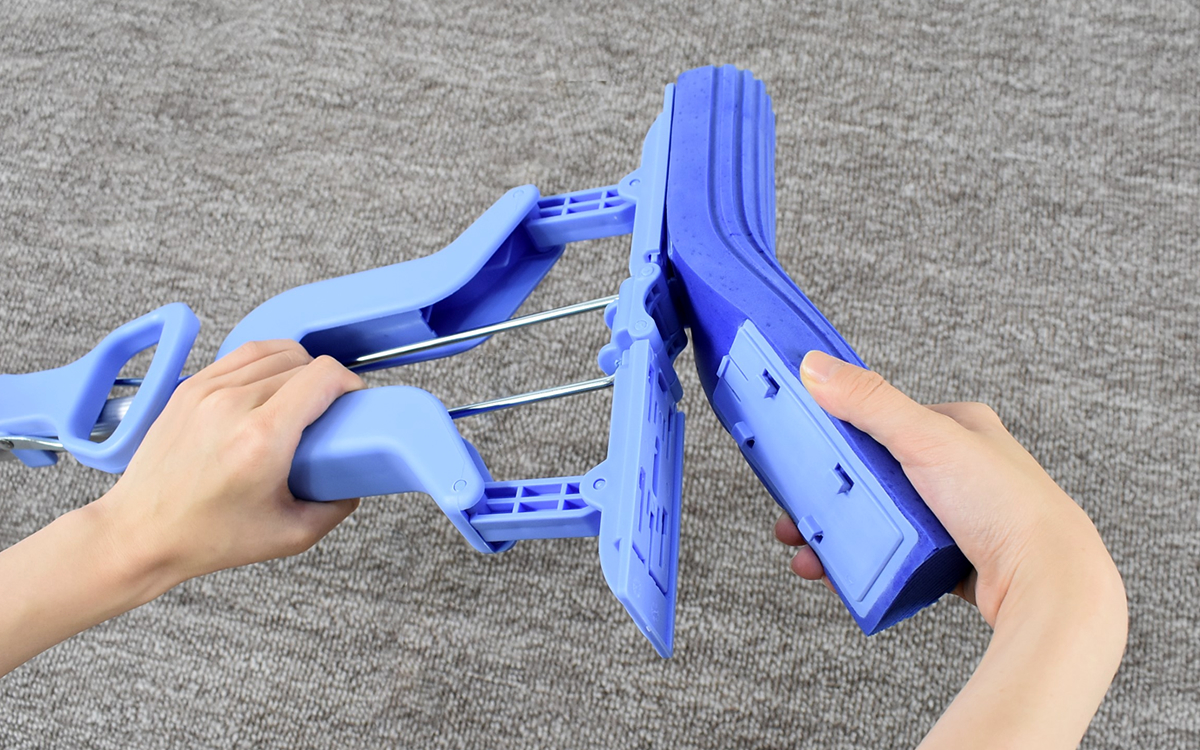 Trước đây, chúng ta thường dùng giẻ và xô để lau những giọt nước trên sàn nhà và tường sơn, nhưng để lau những giọt nước nhiều, chúng ta phải dùng tay vắt giẻ nhiều lần, thật phiền phức. Vì vậy, chúng tôi tập trung vào miếng bọt biển PVA để xem liệu nó có thể hút nước hiệu quả hay không. Chúng tôi đã tiến hành nghiên cứu sản phẩm theo 2 hướng “hút nước + vắt”, và bằng cách sử dụng cần gạt, chúng tôi đã tạo ra một sản phẩm ưu việt có thể dễ dàng “hút nước + vắt” mà không bị bẩn tay.