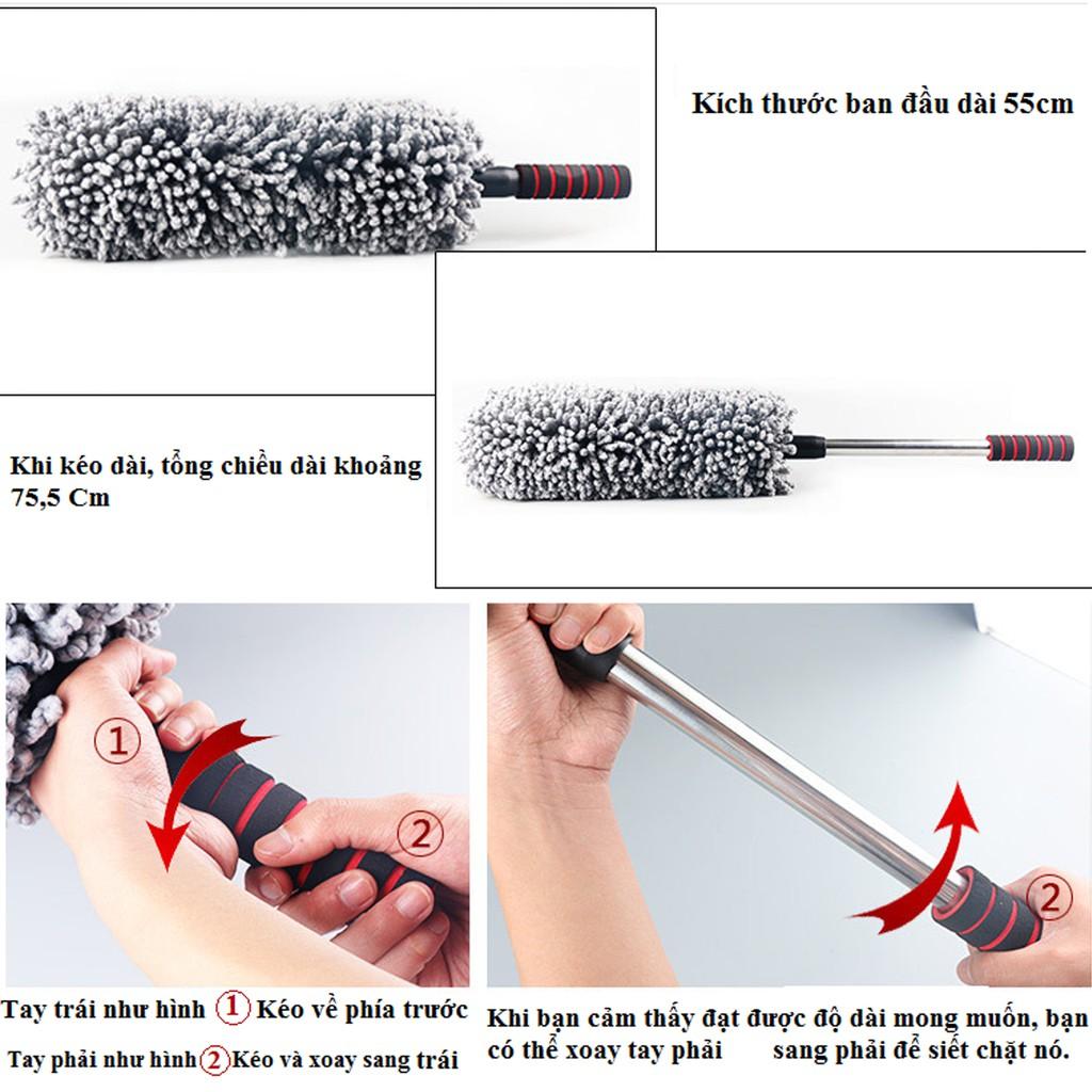 Chổi Lau Bụi Đa Năng, Lau Bụi Nội Thất Ô Tô Sợi Dầu, Cán Co Rút Tiện Lợi