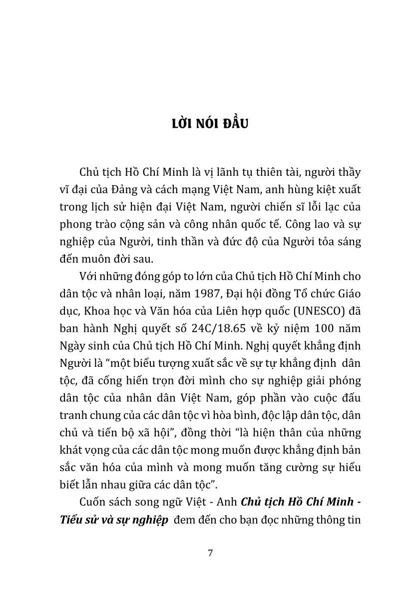 Cho đến nay, đã có nhiều tác phẩm viết về cuộc đời, sự nghiệp cách mạng, tư tưởng, đạo đức và phong cách Hồ Chí Minh bằng tiếng Việt cũng như các ngôn ngữ khác. Trong đó, cuốn sách song ngữ Việt - Anh Chủ tịch Hồ Chí Minh - Tiểu sử và sự nghiệp do Khu Di tích Chủ tịch Hồ Chí Minh tại Phủ Chủ tịch tổ chức biên soạn và biên dịch là cuốn sách có giá trị, gồm những thông tin cơ bản mà đông đảo bạn đọc trong và ngoài nước mong muốn tìm hiểu về Nguyễn Ái Quốc - Hồ Chí Minh.