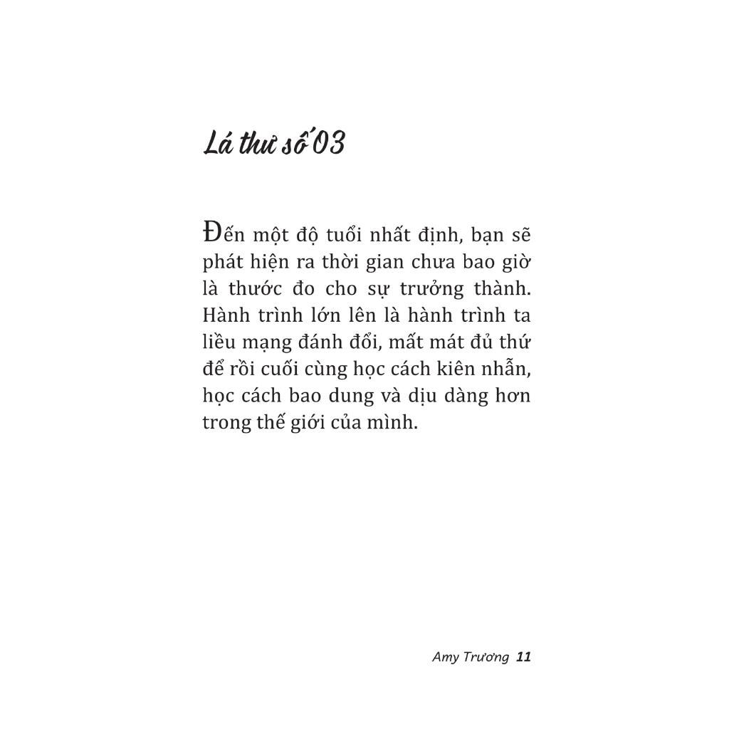 Amy Trương - Một cô gái thích tận hưởng những điều bình dị trong cuộc sống thường nhật, thích viết lách, mộng mơ và dịu dàng. Cô ấy thích kể những câu chuyện, những nỗi niềm của những “người lớn tập sự" qua từng trang sách.