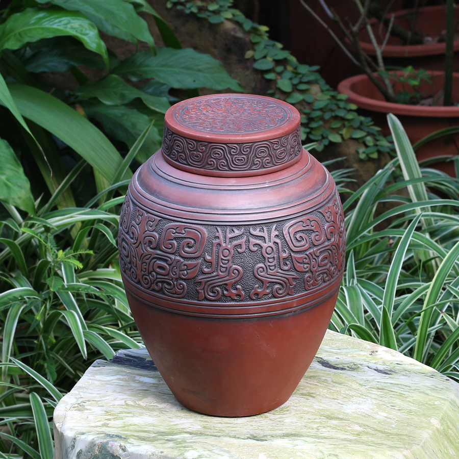 - Lần đầu tiên hình ảnh trống đồng được tái hiện trên chiếc chum sành độc đáo. - Họa tiết đắp nổi tỉ mỉ, công phu bởi nghệ nhân Bát Tràng. - Thiết kế đặc