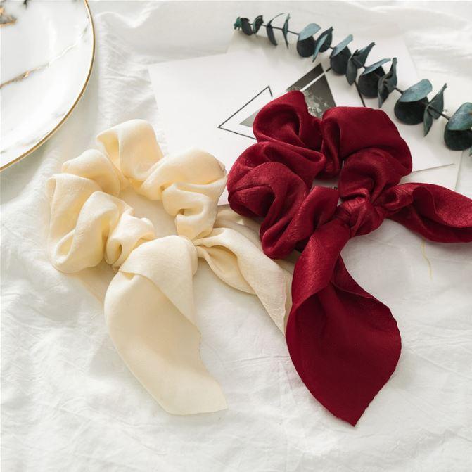 Mua tại TiktokChun buộc tóc nơ vải satin Hàn Quốc xinh xắn dễ thương tiểu thư - Phụ kiện tóc, dây cột tóc