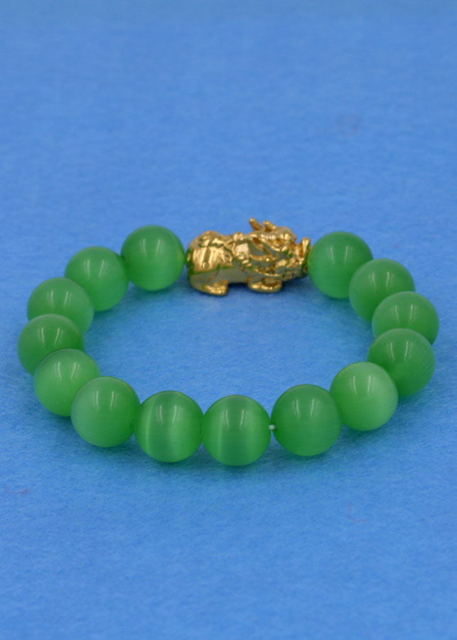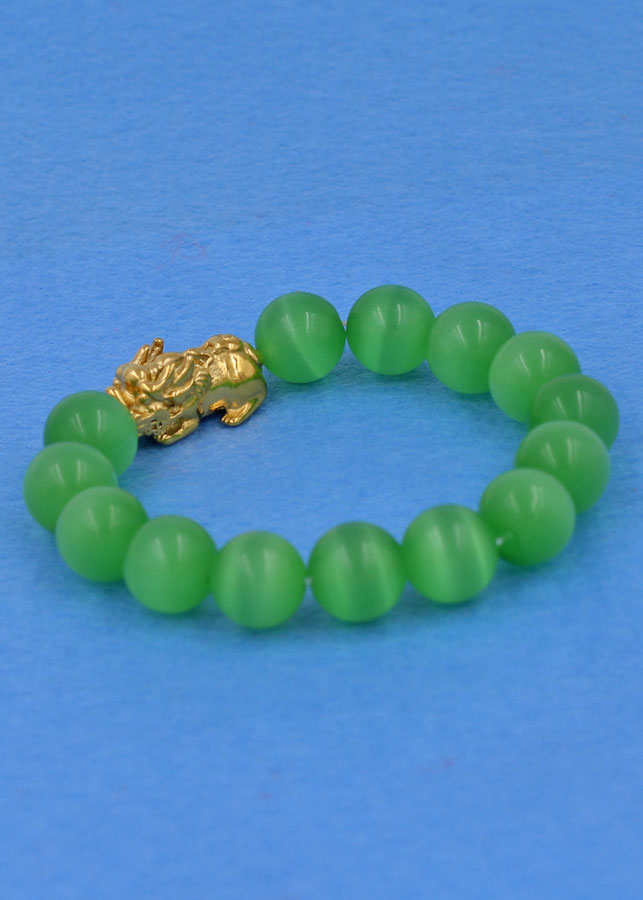 Màu xanh lá luôn đem lại cho ta cảm giác thoải mái tự nhiên nó là tượng trưng của hoà thuận, phát triển cùng với sự tươi mát, màu mỡ. Màu sắc này cũng còn tượng trưng cho sự thông thái.Là màu sắc mang lại cảm giác an toàn và yên ổn. Các bạn có thể thấy các đèn tín hiệu trong giao thông sử dụng màu xanh để báo hiệu an toàn cho các phương tiện di chuyển. Màu xanh của đá mắt mèo này còn mang đến sự nhẹ nhàng với đôi mắt nó mang ý nghĩa của sự hy vọng và phát triển.Đá Mắt Mèo phong thuỷ màu xanh lá rất hợp với người mệnh Hoả nó sẽ mang đến bạn cảm giác tràn đầy sức sống, tươi mát giúp bạn thoải mái trong công việc kinh doanh và học tập.
