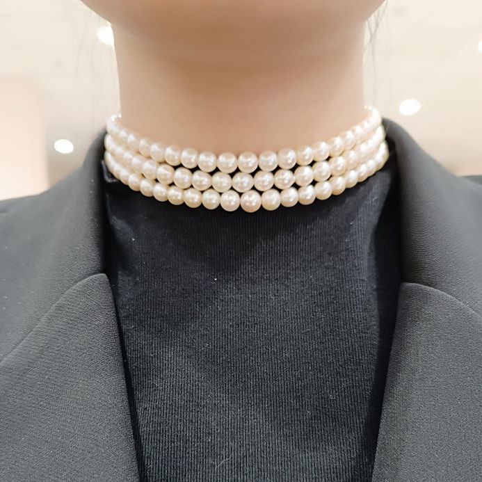 Chuỗi Ngọc Trai Nước Mặn Akoya Ánh Xà Cừ Phớt Vàng - Choker 3 Tầng là một tác phẩm trang sức độc đáo và quý phái, mang trong mình vẻ đẹp tinh tế của ngọc trai và sự lấp lánh của ánh vàng. Được chế tác từ những viên ngọc trai nước mặn Akoya cao cấp, chuỗi ngọc trai này là một biểu tượng vượt thời gian và mang đến sự sang trọng cho bất kỳ trang phục nào.