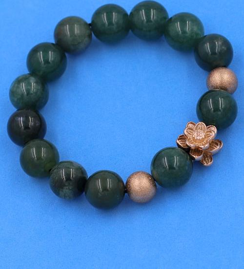 ✨Chuỗi tay Cẩm Thạch Xanh Đậm 12 ly mix hoa sen vàng hồng VCTXDHSHBH12 - Vòng tay hoa sen inox 304, không rỉ sét
