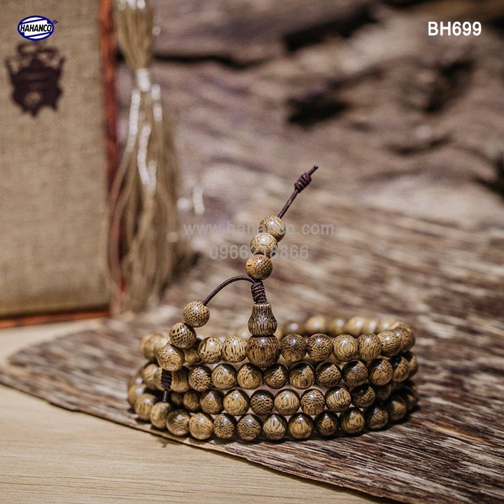 Mô tả sản phẩm: Vòng tay Trầm Hương chuỗi tràng 108 hạt/6mm - tặng kèm thêm dây và kim để thay thế.
