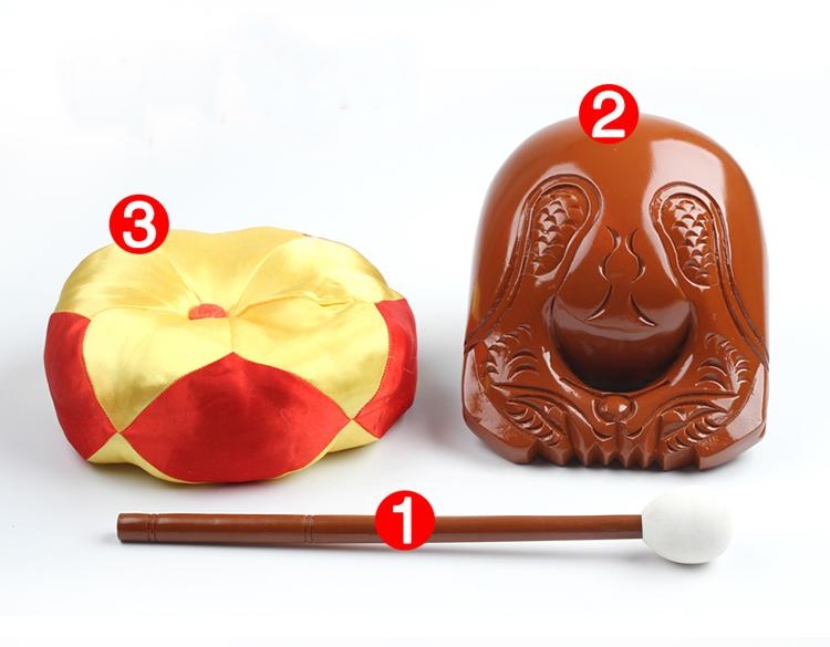 _ Mõ tụng kinh niệm phật được làm bằng chất liệu gỗ mít liền khối tự nhiên 100% ,Và được sơn pu phun mầu mận chín _ Kích thước 12cm + dùi đánh và đế