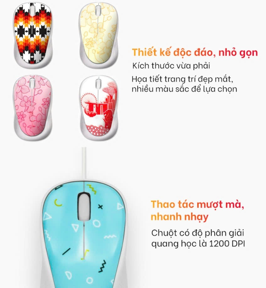 ️ Chuột có dây PMC1005 Artist Series được thiết kế thời trang, nhiều hoa văn trẻ trung phù hợp với sở thích cá nhân.