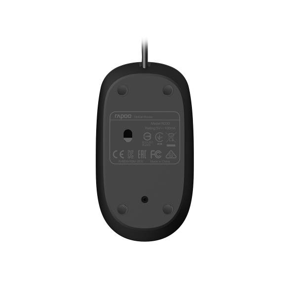 Chuột máy tính có dây Rapoo N200   Kiểu dáng cân đối, màu đen lịch lãm Chuột Có Dây Rapoo N200 thiết kế đơn giản, cân đối 2 bên, phù hợp cho cả người thuận tay trái và tay phải. Khối lượng 70 g nhẹ, gọn, cầm nắm dễ chịu, điều khiển thuận tiện.