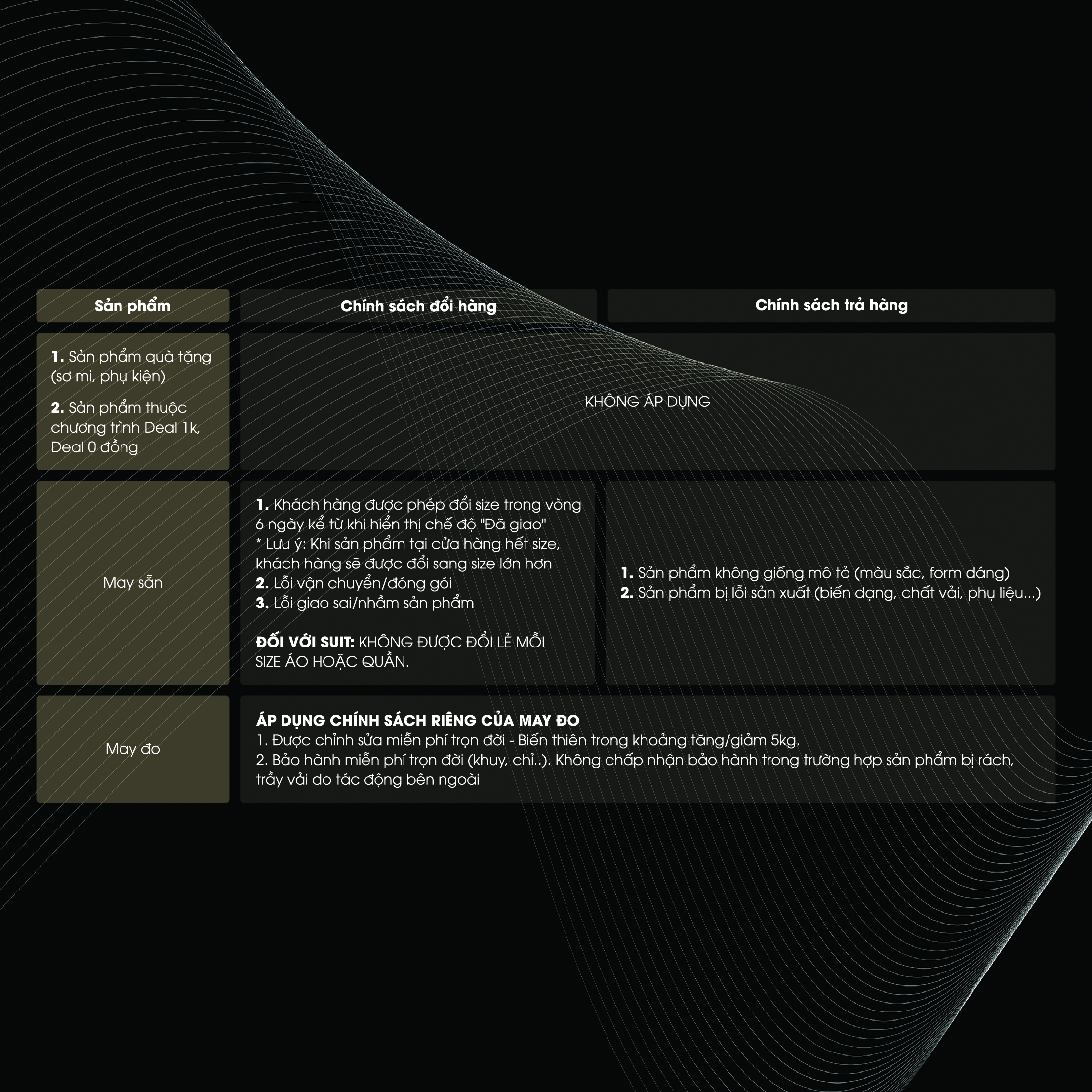 - Size: M L XL XXL • Một bộ suit bao gồm: