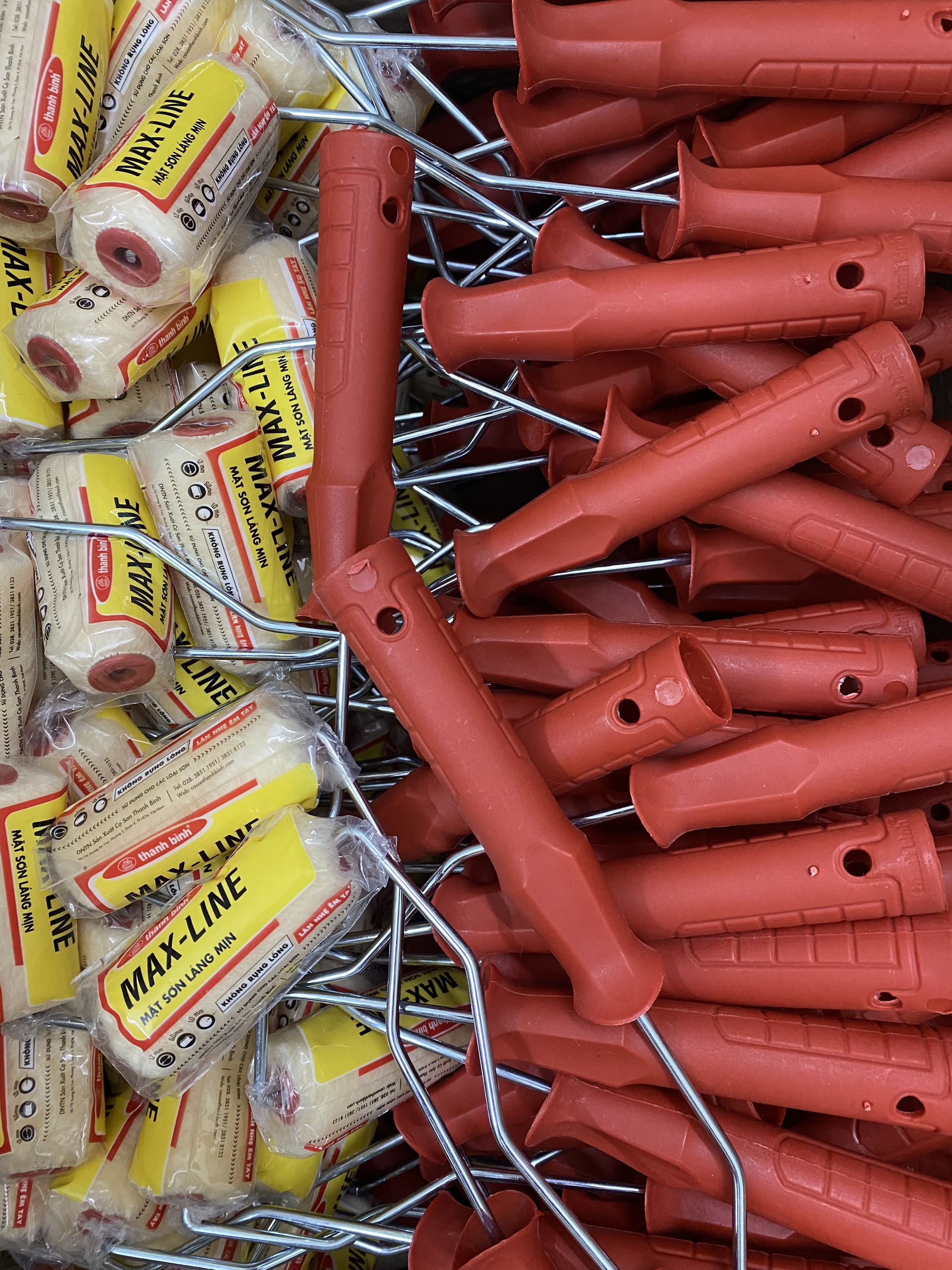 3. Cán Phần cán được sản xuất bằng chất liệu nhựa cao cấp, thiết kế hợp lý mang đến cảm giác điều khiển dễ dàng, tạo cảm giác êm tay cho người thợ khi sử dụng. Ở phần đuôi cán cũng được in dập logo thương hiệu Thanh Bình tạo nên sự nhận biết. ƯU ĐIỂM:  - Tiện lợi, dễ dàng cầm nắm, thao tác thoải mái linh hoạt  - Tiết kiệm thời gian nhờ cấu tạo dạng lăn sơn nhưng lại có thể tiếp cận khu vực nhỏ hẹp giúp lăn nhanh hơn.  - Sơn đều, mịn màng hơn phương pháp quét sơn truyền thống  - Linh hoạt sử dụng cho cả sơn nước và sơn dầu. Đồng thời cọ lăn sơn mini được dùng trong rất nhiều công việc như sơn tường, tủ, bàn ghế… ỨNG DỤNG Con lăn sơn nhỏ Maxline thường được dùng trong những ứng dụng sau: