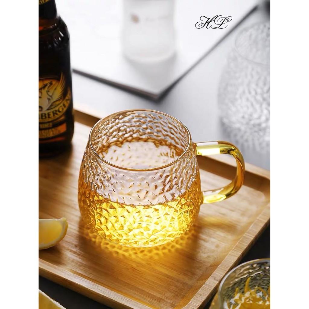 ✨Cốc thủy tinh sần Decor phong cách Home Sweet | Cốc thủy tinh chịu nhiệt thiên thạch quai vàng
