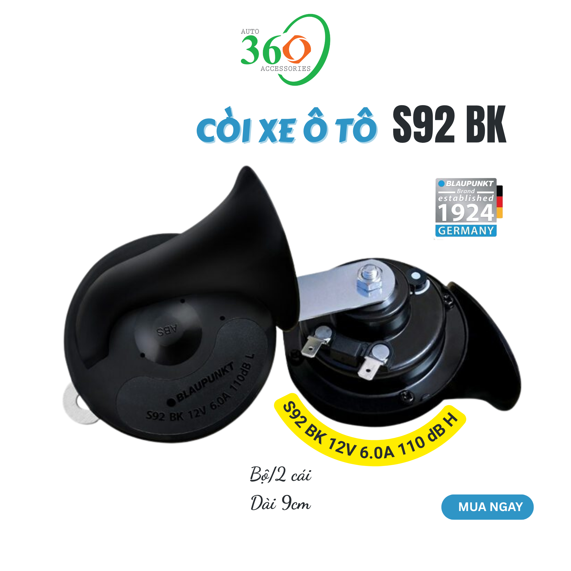 - Bảo hành điện tử - còi xe ô tô chính hãng - không cần lo lắng Giá chỉ 750.000đ/bộ 2 cái – đầu tư nhỏ, an toàn lớn! Đừng để tiếng còi yếu ớt làm bạn bị lấn át trên đường. Trang bị ngay còi xe Blaupunkt S92 BK để lái xe an toàn và tự tin hơn mỗi ngày! Thông số kỹ thuật còi xe ô tô S92 BK